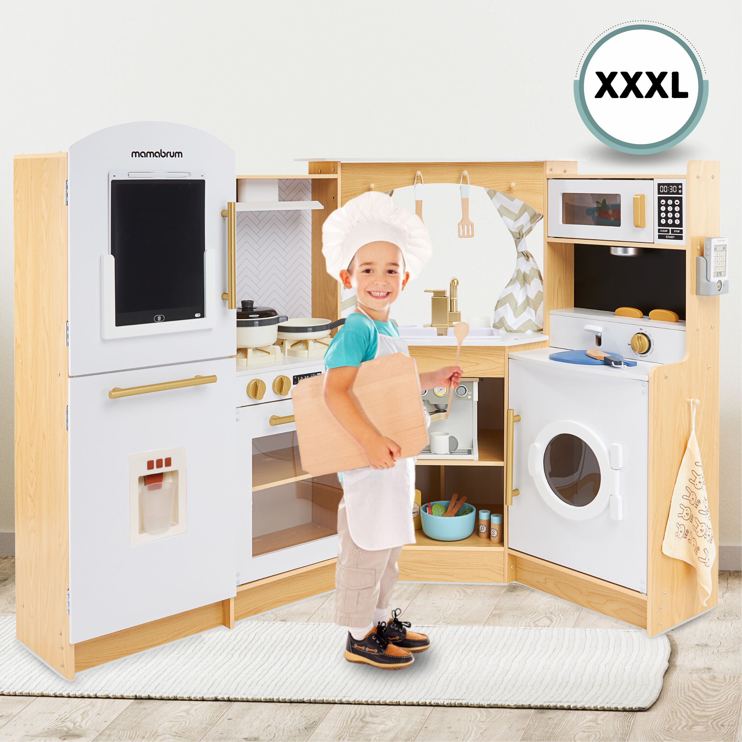 XXXXL μεγάλη ξύλινη διαδραστική κουζίνα με φωτισμό LED, πλυντήριο ρούχων, φούρνο μικροκυμάτων - 50 στοιχεία
