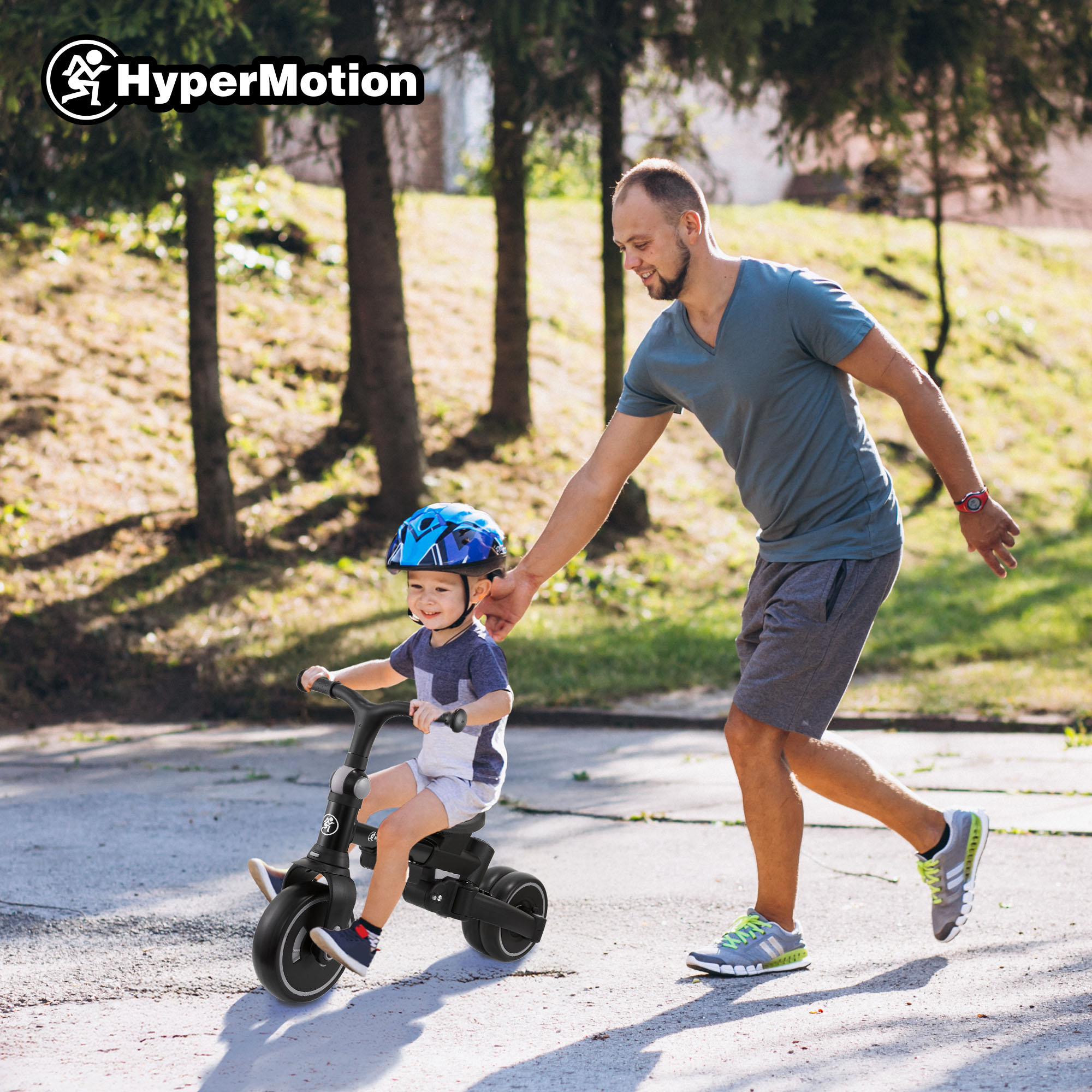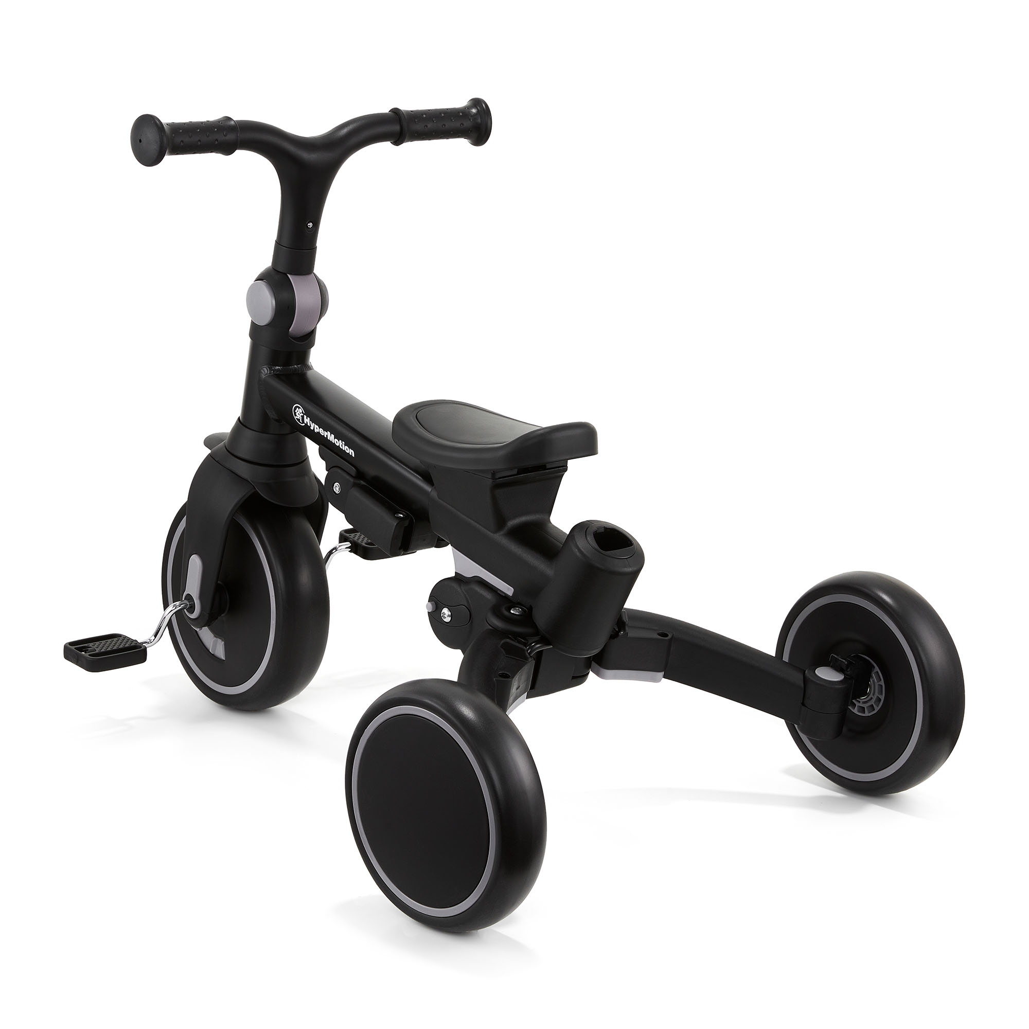 Το τρίκυκλο μπορεί εύκολα να προσαρμοστεί στις τρέχουσες ικανότητες και ανάγκες του παιδιού σας. Για τα μικρότερα παιδιά, είναι καλή ιδέα να στρέψετε το κάθισμα προς τους γονείς, να τοποθετήσετε μπάρα ασφαλείας, θόλο, υποπόδια και μια μπάρα που επιτρέπει στους γονείς να κινούν το όχημα. Καθώς το νήπιο μεγαλώνει, τα υποπόδια μπορούν να αναδιπλωθούν προς τα κάτω, να τοποθετηθούν τα πεντάλ, να αφαιρεθεί το στήριγμα ασφαλείας και το στέγαστρο και να αναποδογυριστεί το κάθισμα. Μόλις κατακτηθούν οι βασικές αρχές οδήγησης, το τρίκυκλο μπορεί εύκολα να μετατραπεί σε πατίνι. Όλες οι αλλαγές δεν απαιτούν εργαλεία και γίνονται γρήγορα και εύκολα.