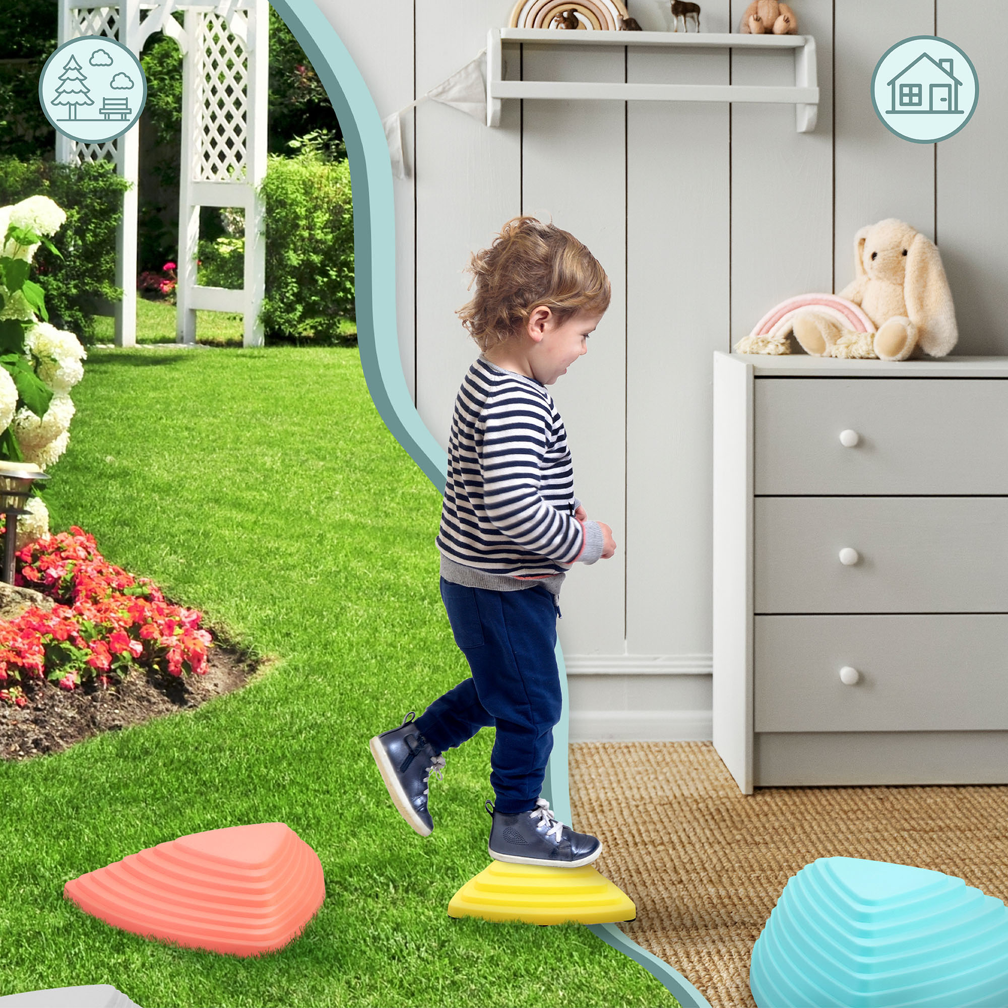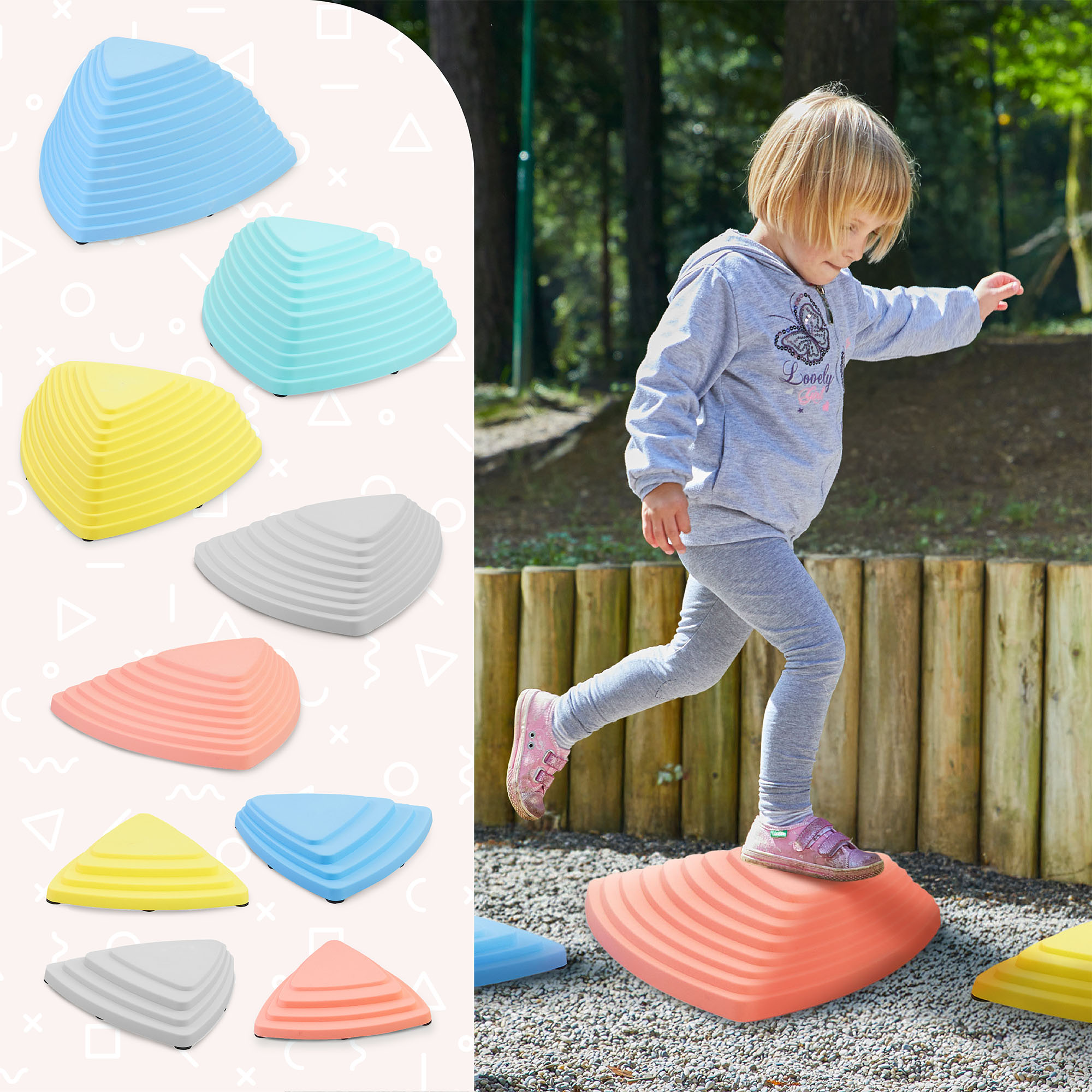 Η αντιολισθητική επιφάνεια των αισθητηριακών πετρών αποτρέπει τις επώδυνες πτώσεις των παιδιών και παρέχει στα πόδια τους εξαιρετικό κράτημα. Χάρη στο ανθεκτικό αλλά ελαφρύ πλαστικό, το σετ είναι ιδανικό για το παιχνίδι και τις ασκήσεις ισορροπίας των μικρών, υποστηρίζοντας την κινητική τους ανάπτυξη με ασφαλή τρόπο.