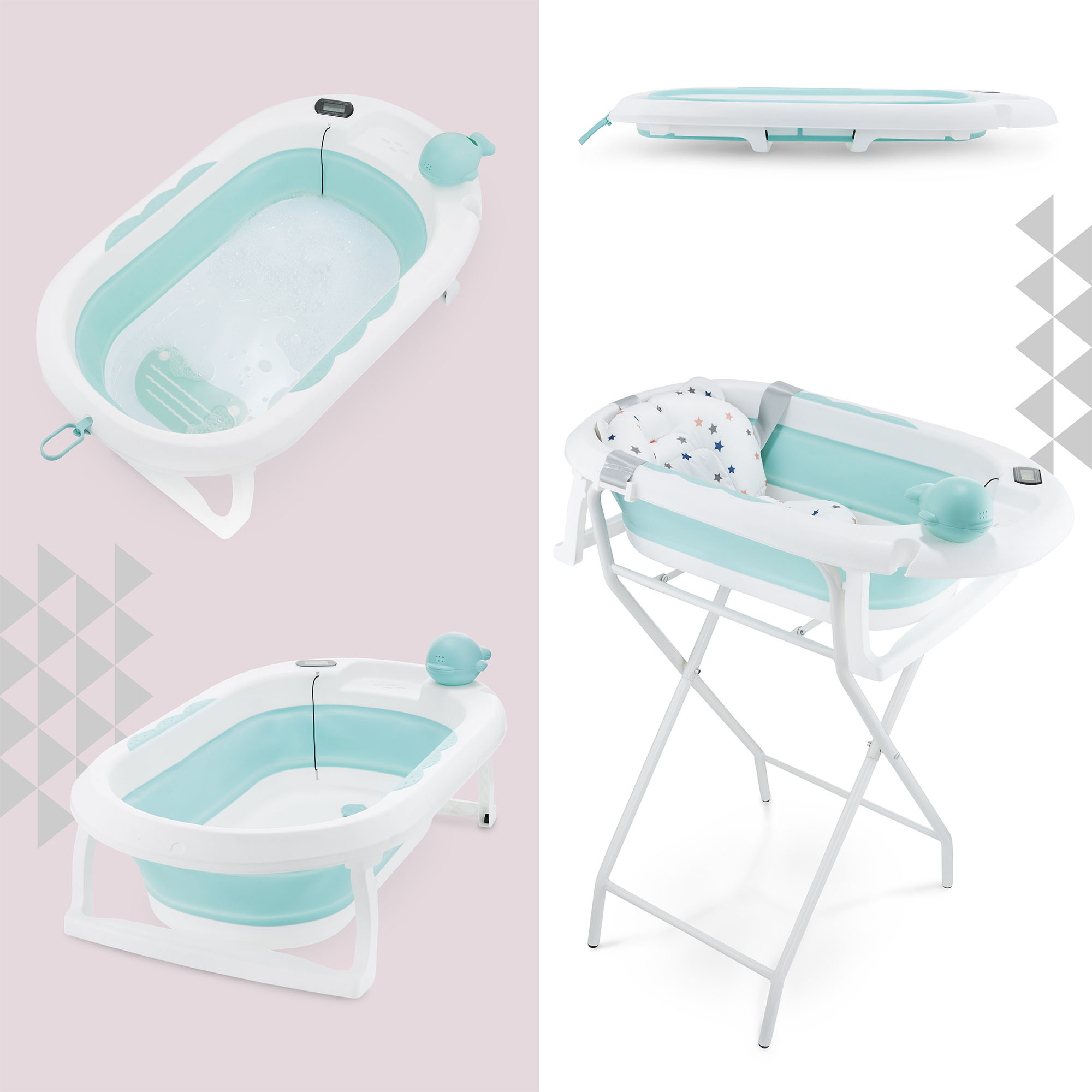 Πτυσσόμενη μπανιέρα για μωρά με θερμόμετρο, ένθετο και βάση - χρώμα μέντας