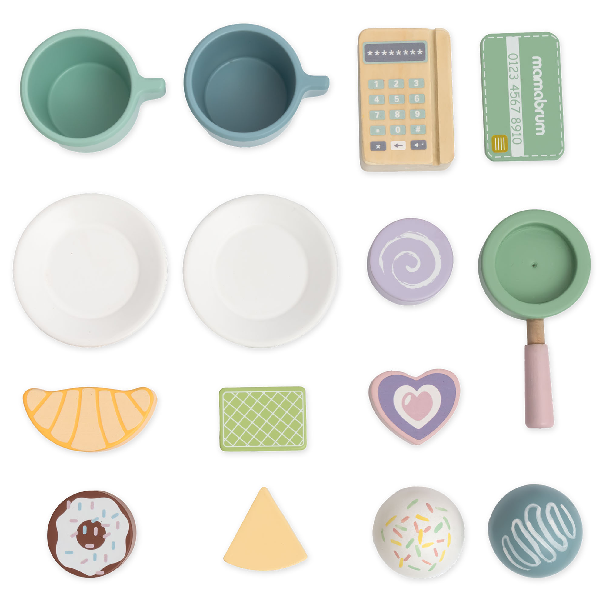 Εξοπλισμένο με πολυάριθμα αξεσουάρ, το καφενείο είναι μια συνταγή για δημιουργική ψυχαγωγία. Το σετ διεγείρει τη φαντασία των παιδιών και ταιριάζει απόλυτα στη διακόσμηση του παιδικού δωματίου χάρη στα απαλά χρώματα και το μοντέρνο σχεδιασμό του. Κατασκευασμένο από φυσικό ξύλο, το παιχνίδι υποστηρίζει την ανάπτυξη των κοινωνικών, κινητικών και γνωστικών δεξιοτήτων των νηπίων. Με μια ποικιλία στοιχείων και ρεαλιστικές λειτουργίες - όπως ο επιλογέας της καφετιέρας που κάνει κλικ - το παιχνίδι μπορεί να φαίνεται διαφορετικό κάθε φορά.