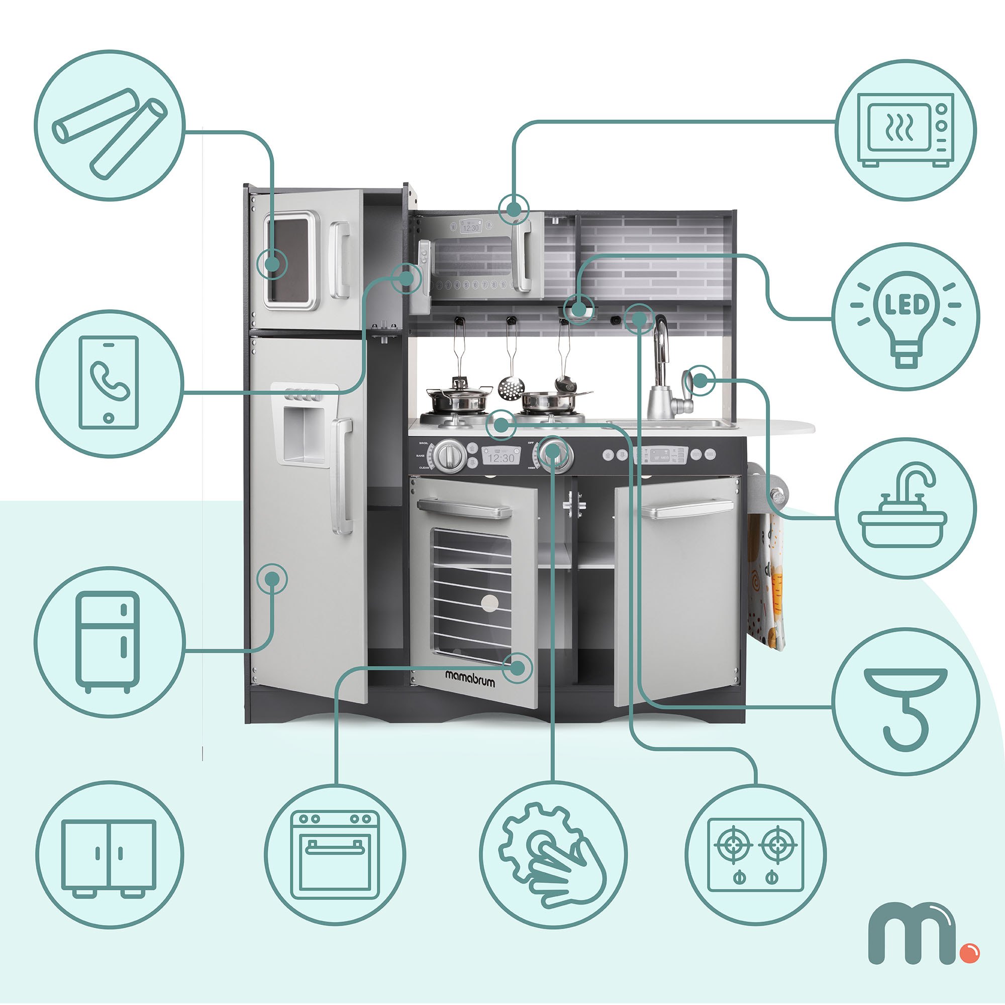 Ξύλινη κουζίνα XXL με φωτισμό LED, ποδιά και αξεσουάρ