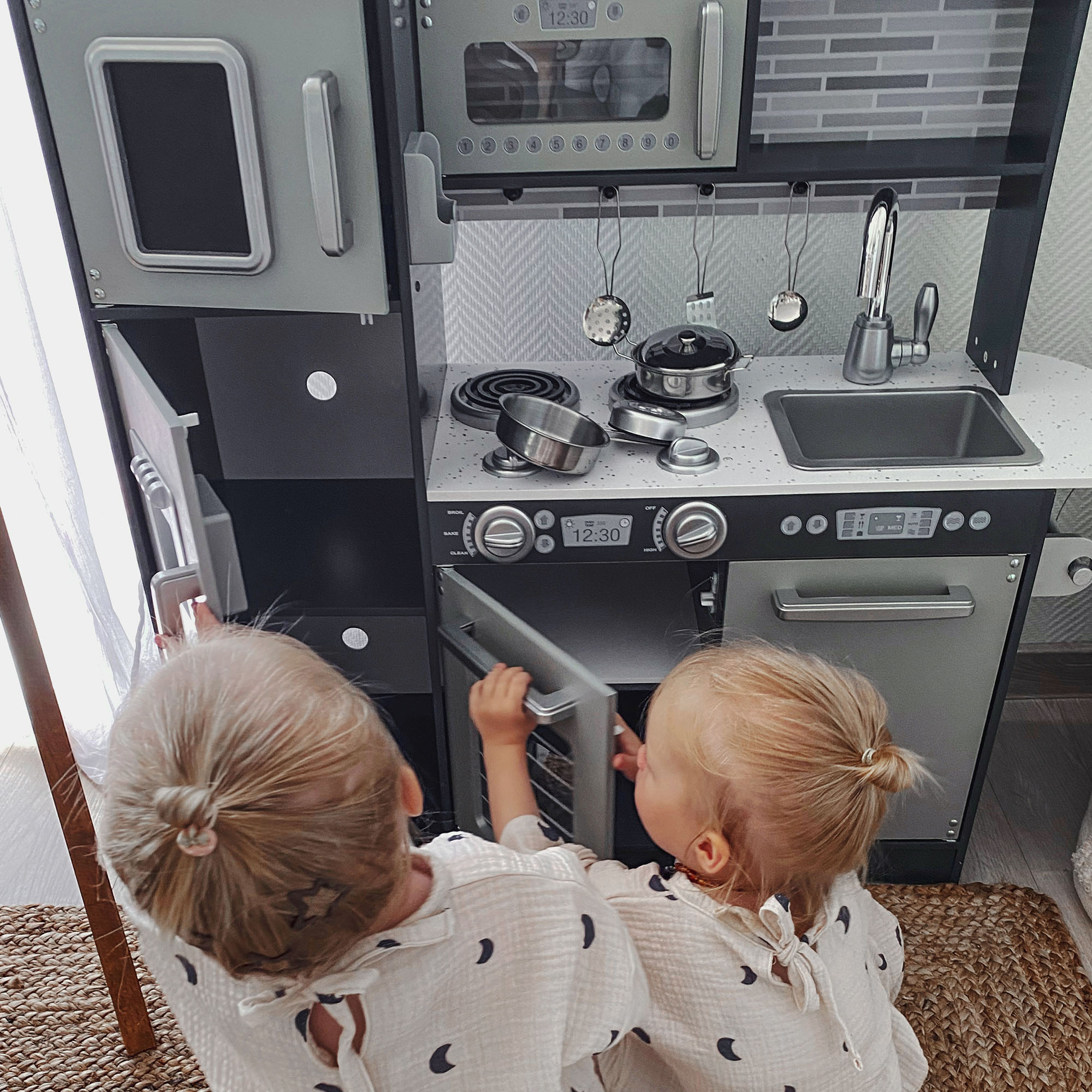 Αξεσουάρ όπως κουτάλι, κουτάλα και σπάτουλα αναπαράγονται πιστά από την έκδοση για ενήλικες. Η κουζίνα είναι κατασκευασμένη από ξύλο.