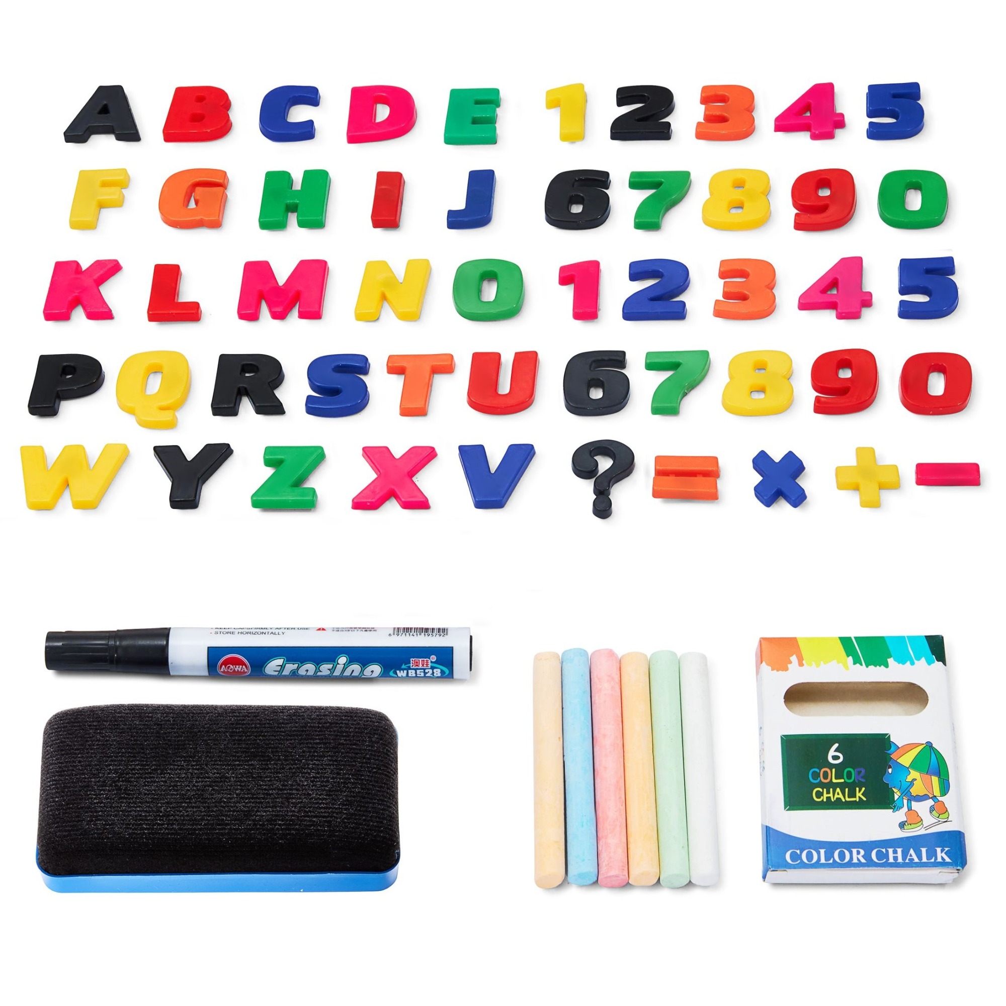 - Σετ αξεσουάρ: κιμωλία, μαρκαδόρος, σφουγγάρι, μαγνητικά γράμματα και αριθμοί