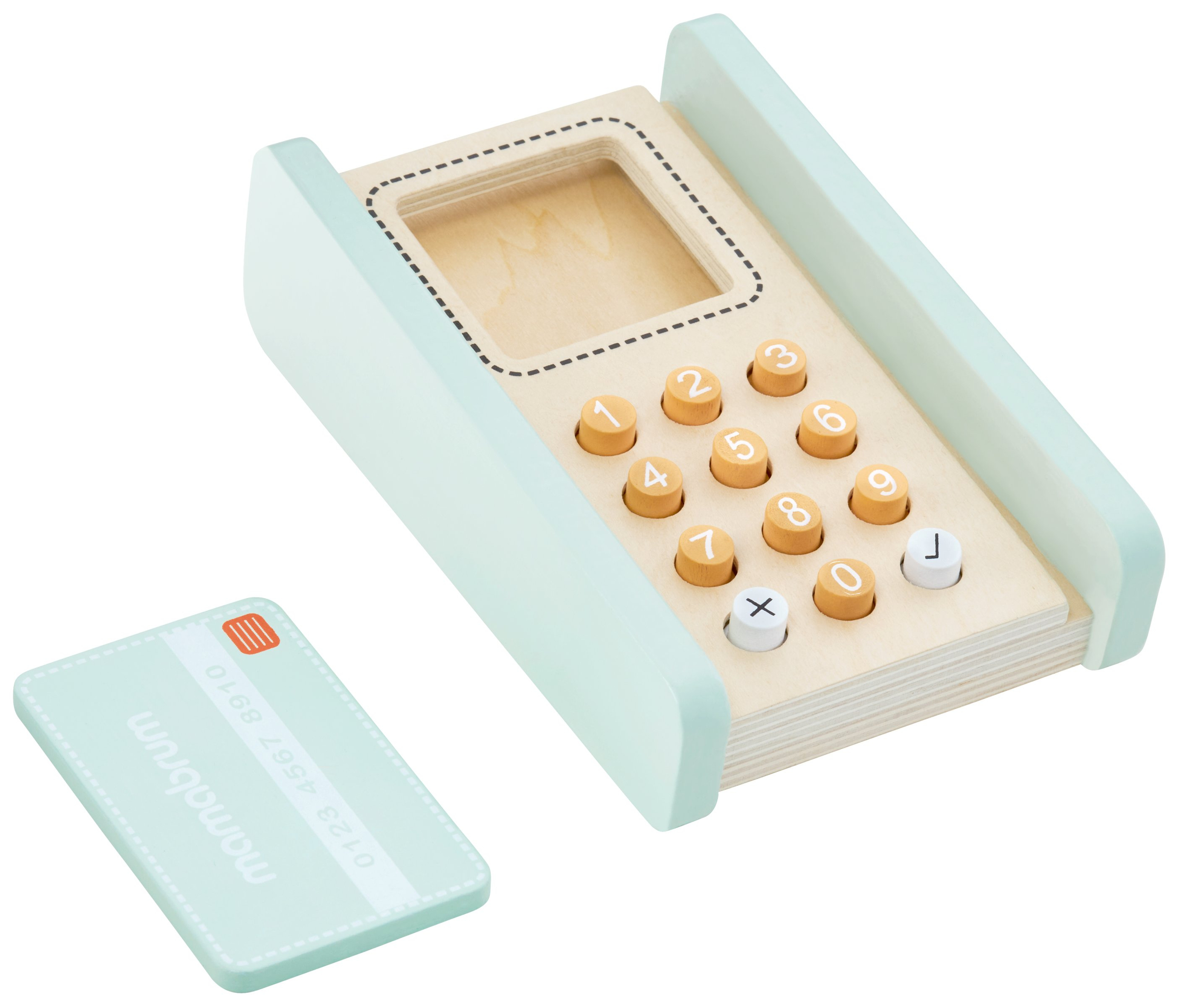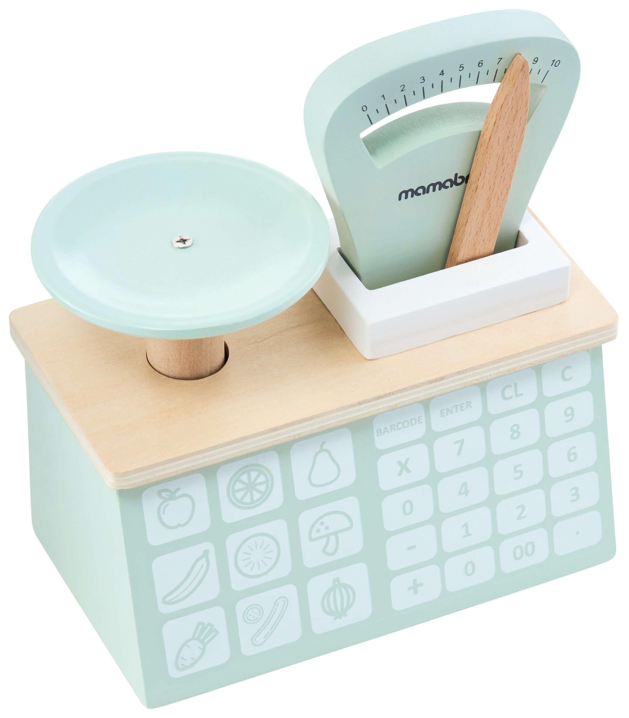 Μεγάλο ξύλινο κατάστημα - πάγκος και θέατρο 2 σε 1 με ζυγαριά, τερματικό πληρωμής, φρούτα και λαχανικά