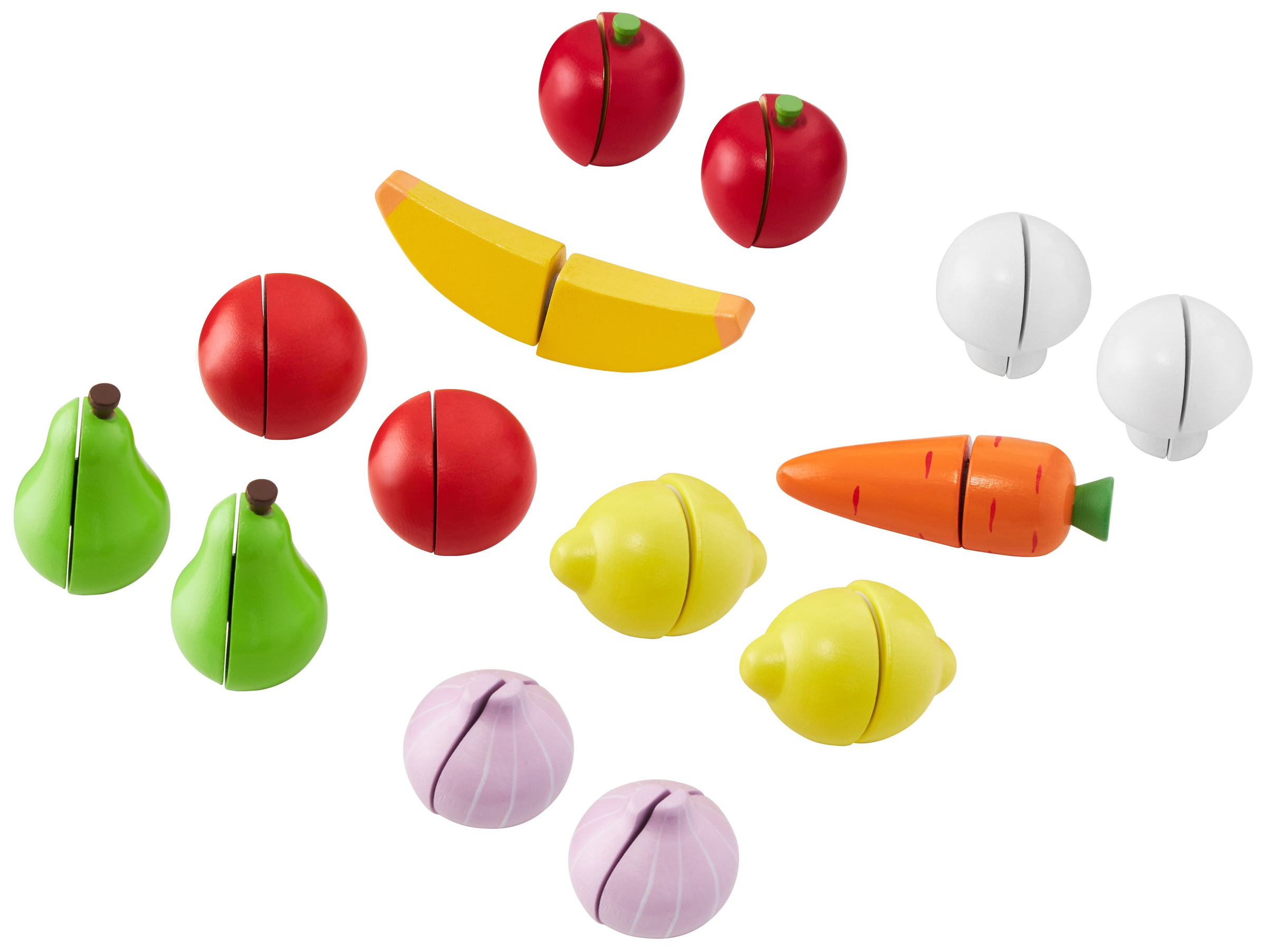 • Μέχρι και 16 κομμάτια φρούτων και λαχανικών προς κοπή (κάθε λαχανικό ή φρούτο αποτελείται από δύο μισά που ενώνονται μεταξύ τους με Velcro)
