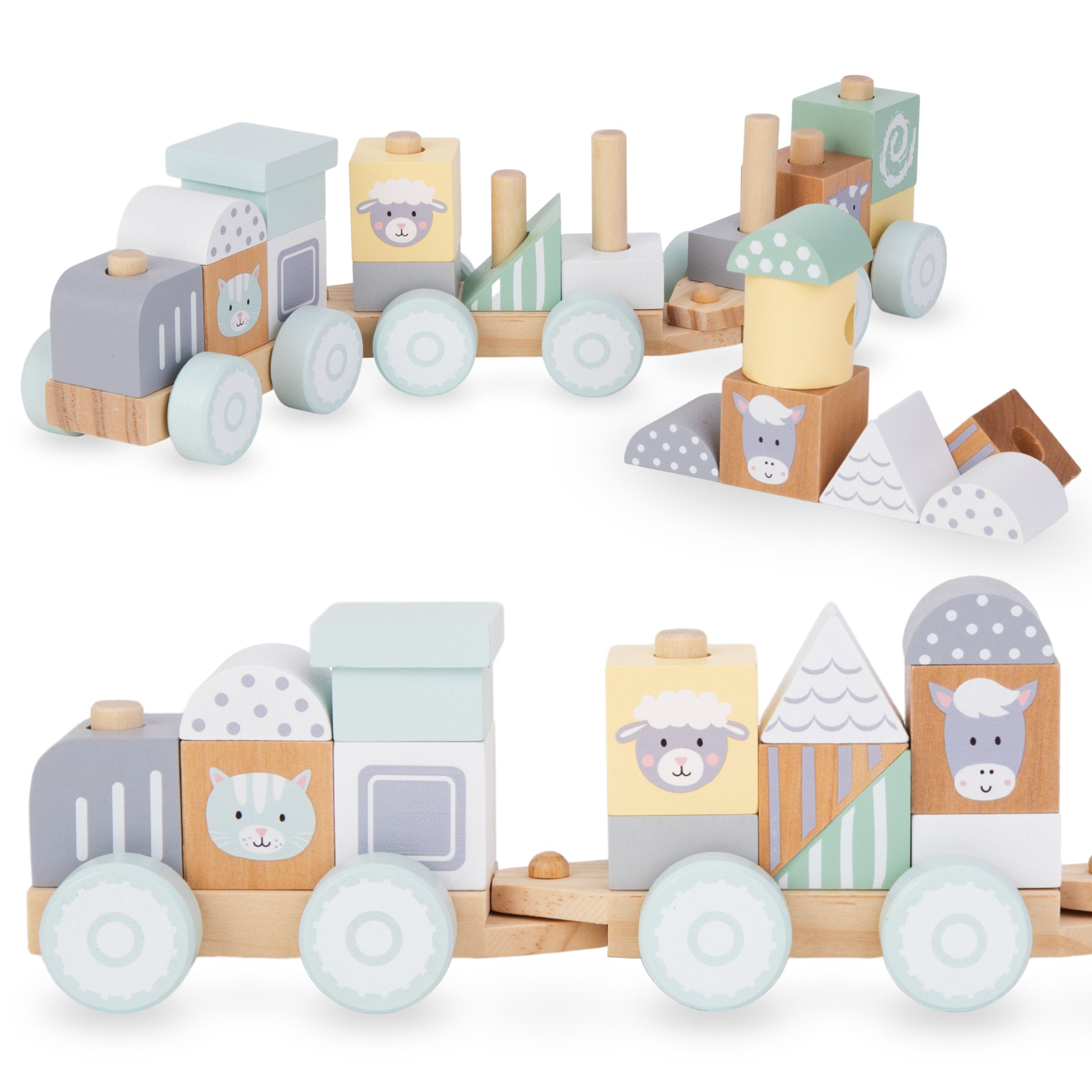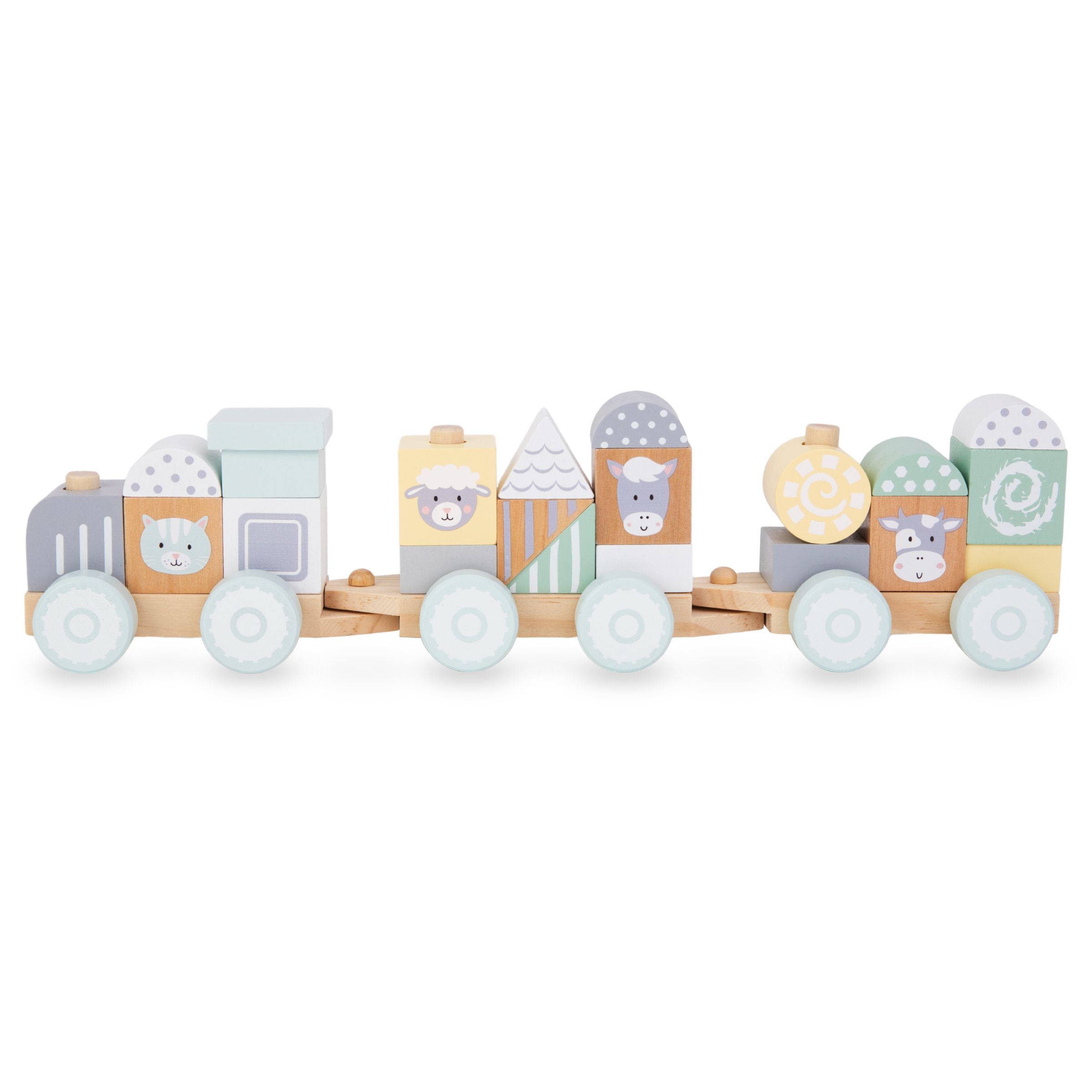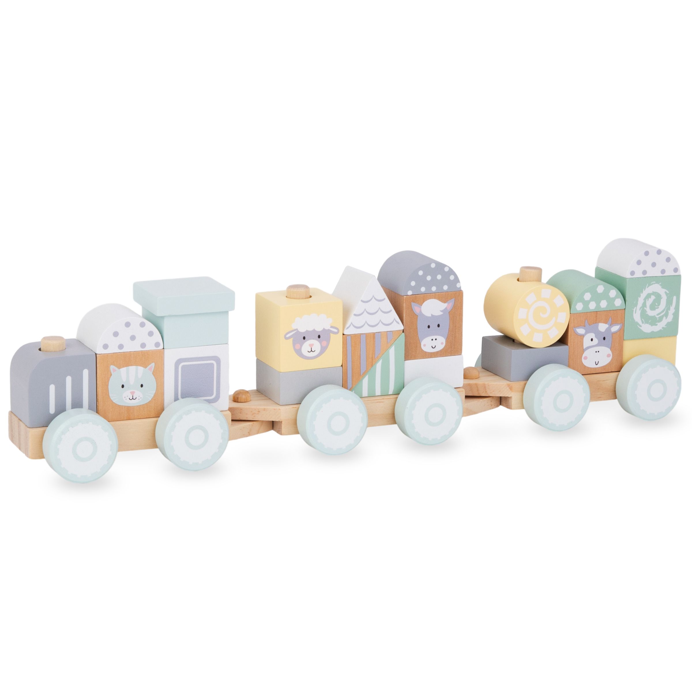 Ξύλινο τρένο με τουβλάκια για αγόρι - Αγρόκτημα