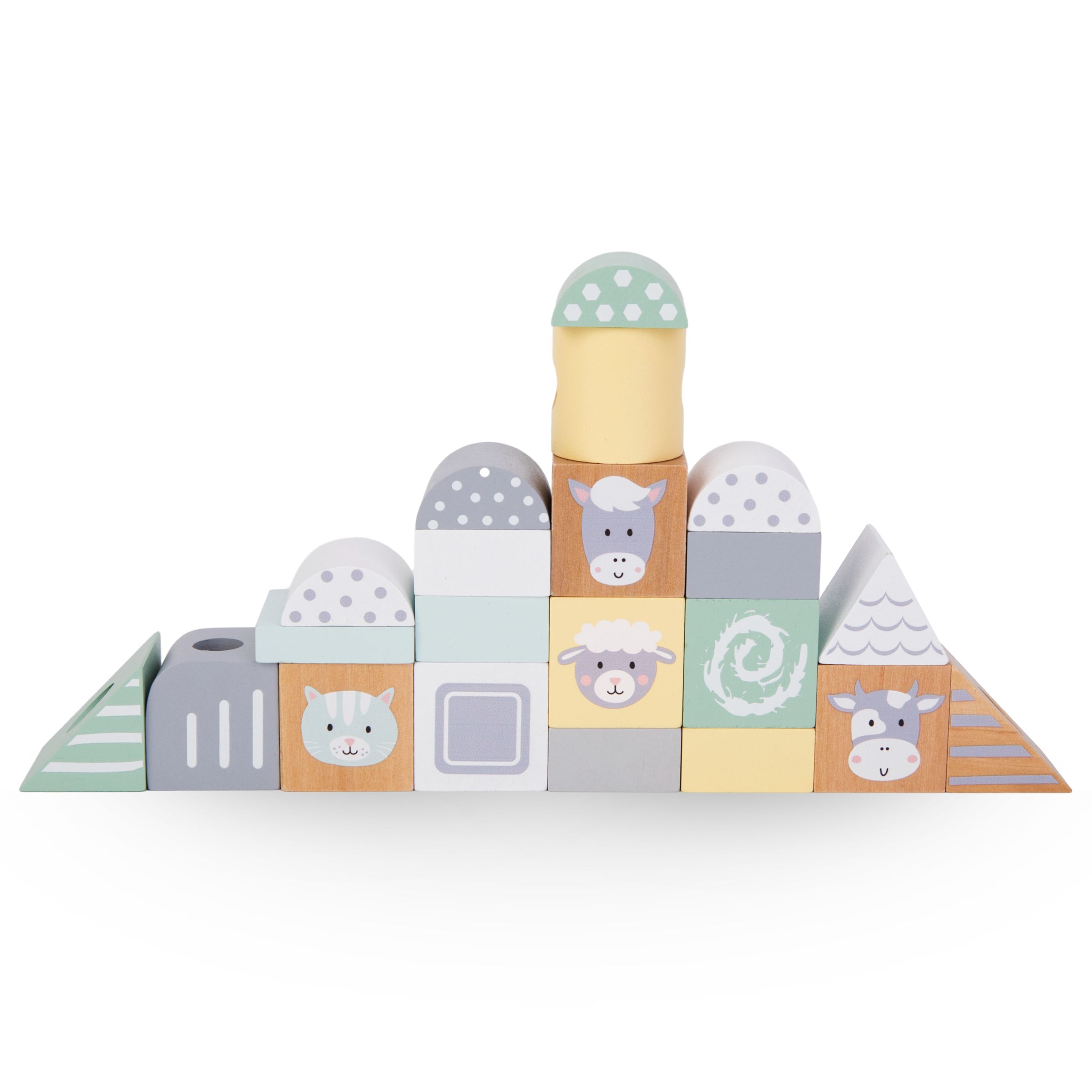 - 21 ξύλινα τουβλάκια σε διάφορα σχήματα και χρώματα